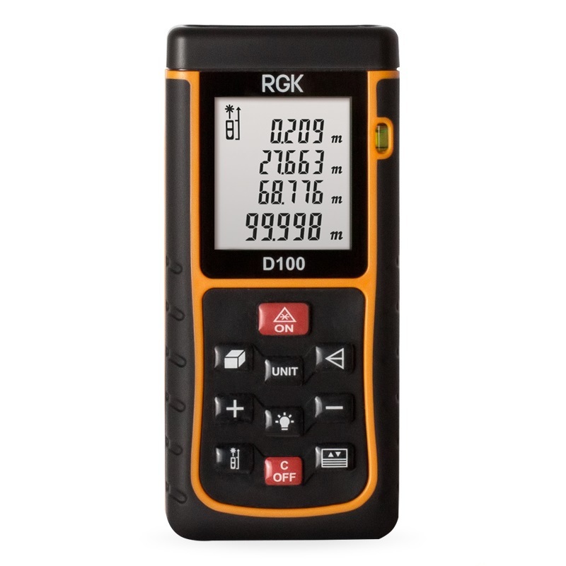 Лазерный дальномер RGK D100 – это самый функциональный прибор из линейки лазерных рулеток RGK. Возможности этого профессионального измерительного инструмента удовлетворят любого, даже самого требовательного строителя, значительно упростит процесс измерений, повысив их эффективность, сократит время выполнения работ.